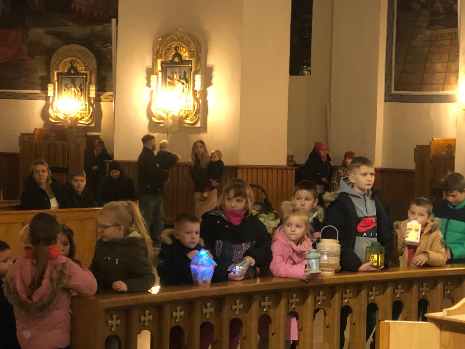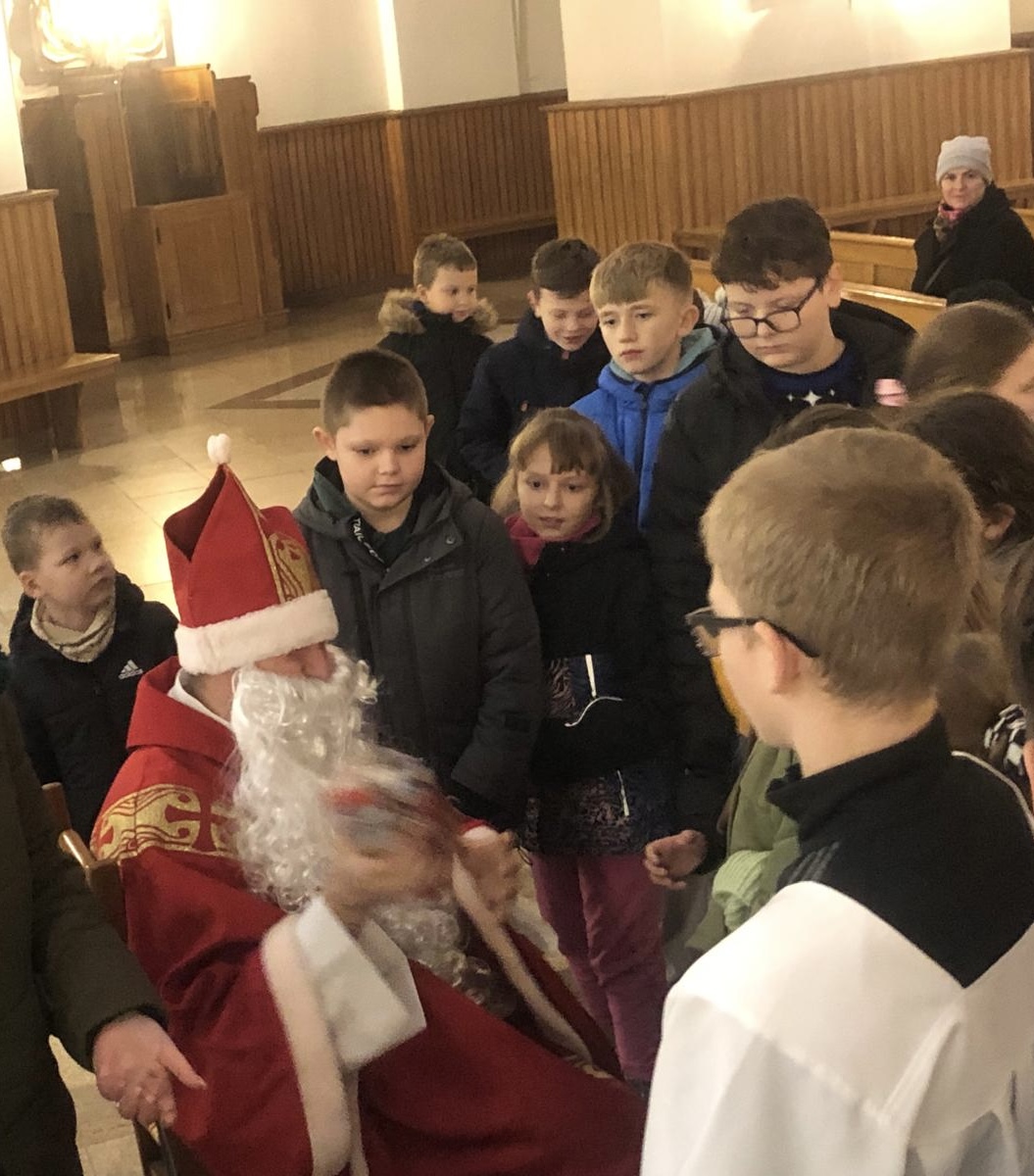 Święty Mikołaj przybył „niespodziewanie” do naszej hodyszewskiej świątyni i po Mszy św. roratniej podarunkami ucieszył ponad 60-ro dzieci.