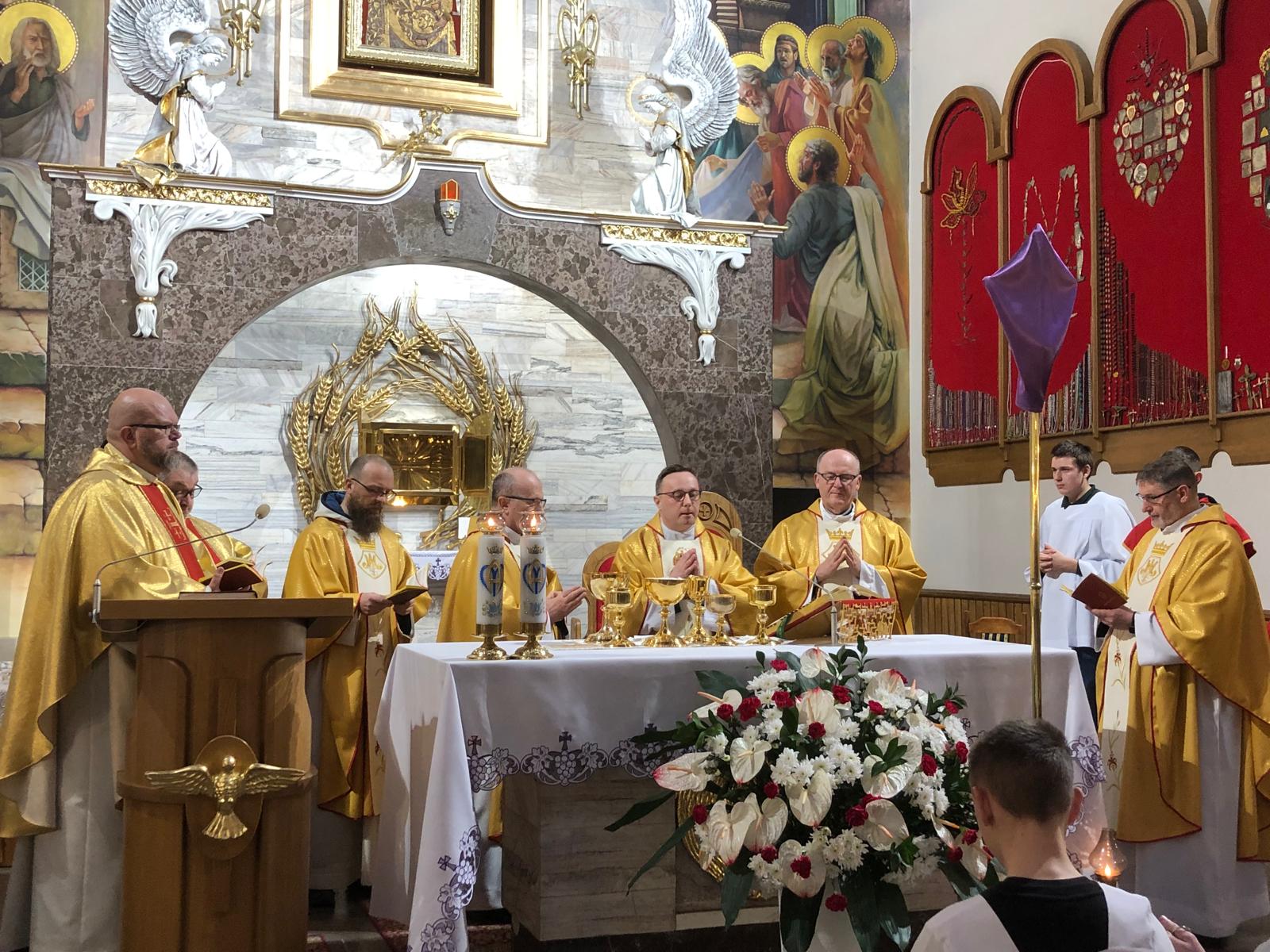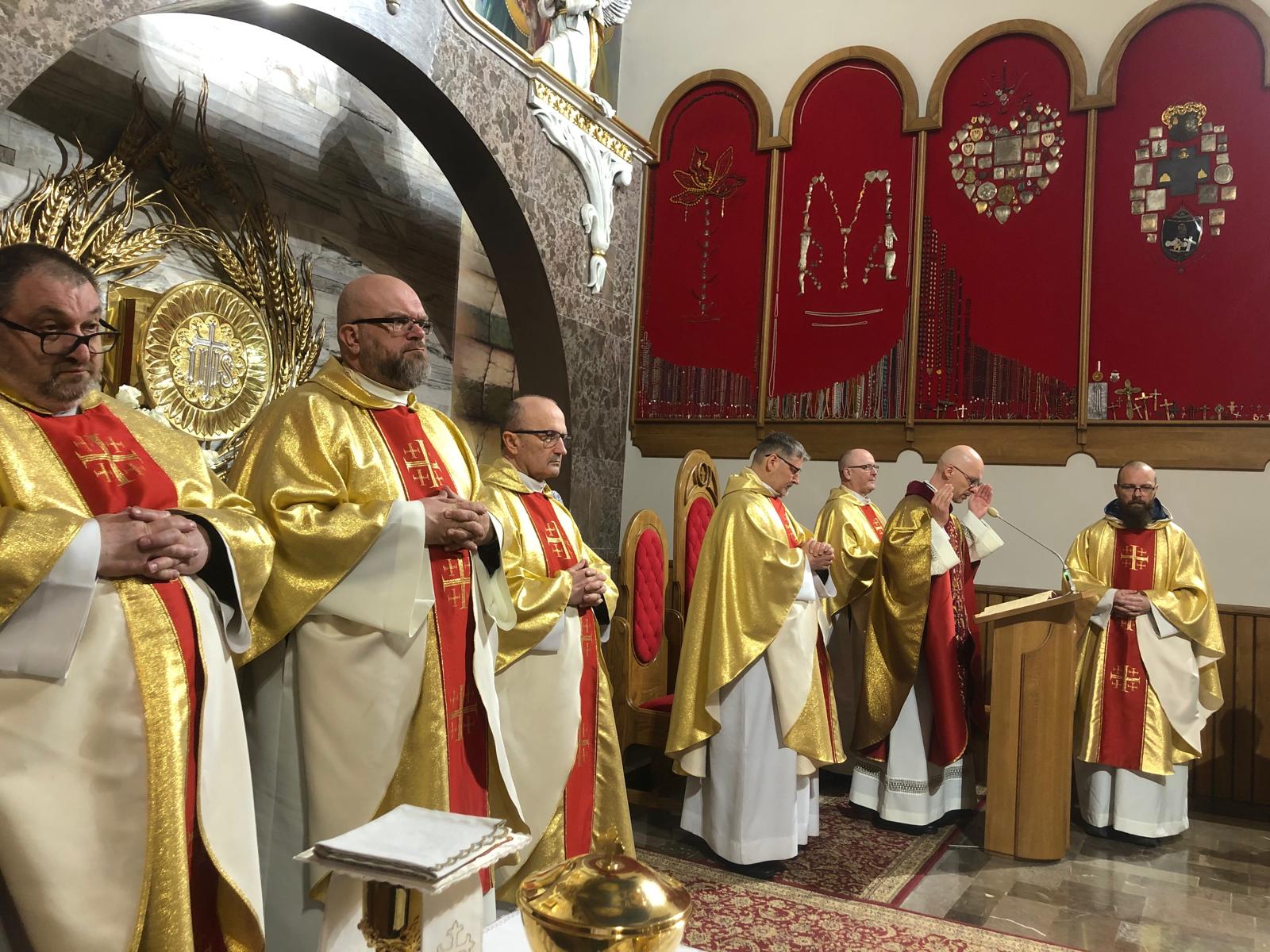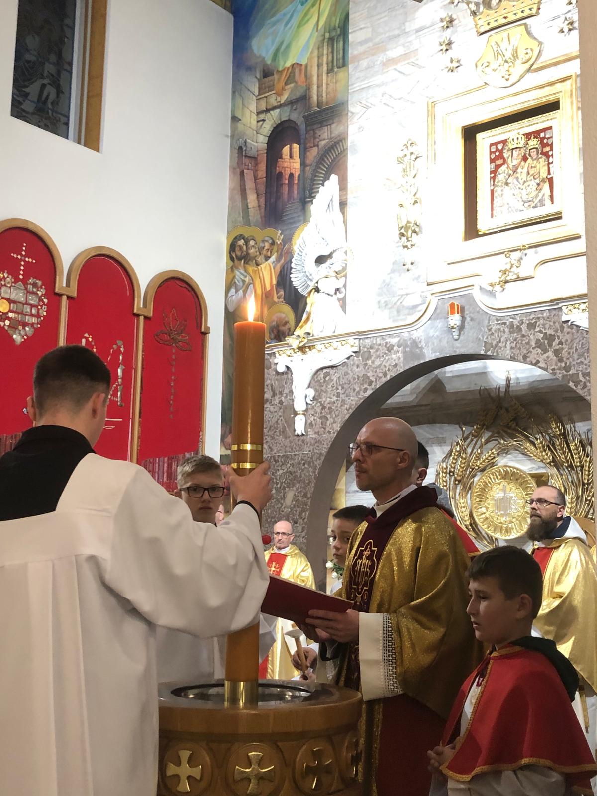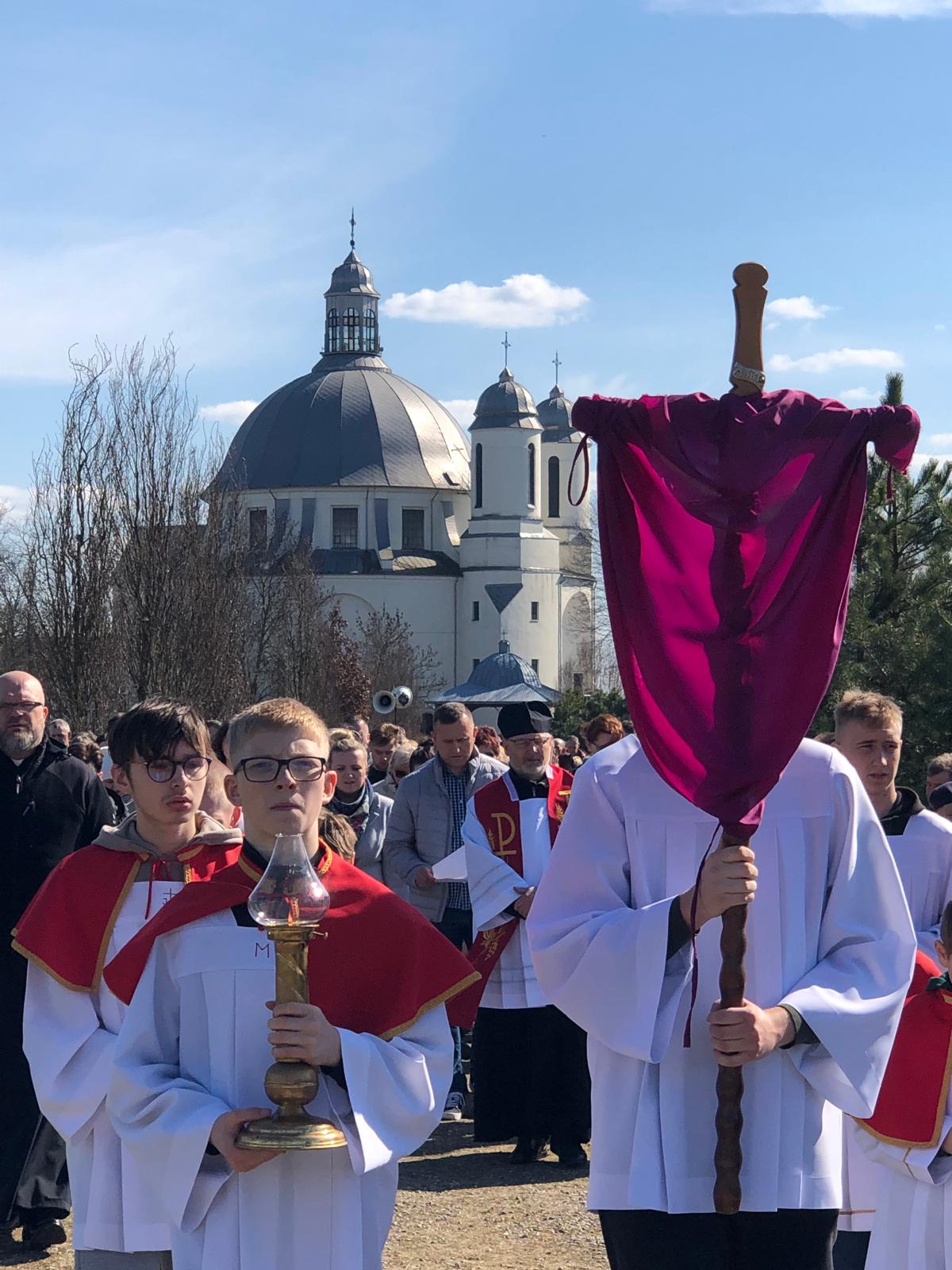 Dwa dni tegorocznego Triduum celebrowali zaproszeni goście: w Wielki Czwartek Mszy Wieczerzy Pańskiej wraz z obrzędem obmycia nóg celebrował wiceprowincjał Polskiej Prowincji Chrystusa Króla ks. Grzegorz Kurp SAC, a Liturgii Wigilii Paschalnej przewodniczył radca prowincjalny i prefekt alumnów WSD w Ołtarzewie ks. Grzegorz Suchodolski SAC. Liturgię Wielkiego Piątku jak co roku poprzedziła Droga Krzyżowa na placu koronacyjnym. Celebracja liturgii z uczczeniem krzyża Chrystusa dokonała się w sanktuarium. Świętowanie Niedzieli Zmartwychwstania Pańskiego tradycyjnie rozpoczęła procesja rezurekcyjna wczesnym rankiem.